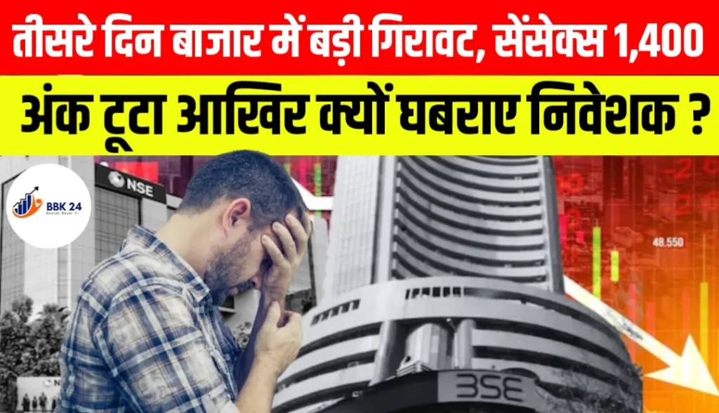 भारतीय शेयर बाजार में शुक्रवार का दिन निवेशकों के लिए भारी साबित हुआ। सुबह सामान्य शुरुआत के बाद कुछ ही घंटों में बाजार में बिकवाली तेज हो गई और प्रमुख सूचकांक तेजी से नीचे खिसकने लगे। कारोबार के दौरान सेंसेक्स लगभग 1,400 अंक तक टूट गया, जबकि निफ्टी 23,200 के स्तर के नीचे फिसल गया यह गिरावट सिर्फ एक दिन की हलचल नहीं थी। दरअसल, बाजार लगातार तीसरे सत्र में दबाव में रहा, जिससे निवेशकों के बीच अनिश्चितता का माहौल बन गया। लगभग सभी प्रमुख सेक्टर लाल निशान में कारोबार करते दिखाई दिए और कई बड़े बैंकिंग व ऑटो शेयरों में तेज बिकवाली देखने को मिली।